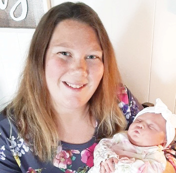 Madison Employee Sabrina pictured with her newborn baby girl